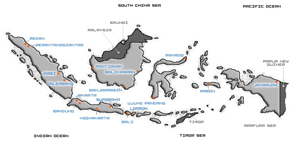 Indonesia is the world's largest achipelagi comprising some 17,508 islands that stretch across the equator for more than 5,000 miles. There are five main islands and 30 smaller archipelagoes. The main islands are Kalimantan, Sumatra, Papua, Sulawesi and the most populated island, Java.
