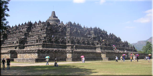 Lying in the shadow of the aptly named "Fire Mountain", (2914 meter-high active volcano, Mt.Merapi), is the seat of the once mighty Javanese Empire of Mataram, Ngayogyakarto Hadiningrat.Yogyakarta (Yogya) came into being in 1755, when a land dispute split the power of Mataram into the Sultanates of Yogyakarta and Surakarta (solo). Prince Mangkubumi built Kraton of Yogyakarta and created one of the most powerful Javanese states ever. The Kraton is still the hub of Yogyakarta's traditional life and despite the advance of the refinement which has been the hallmark of its art and people for centuries. Yogyakarta is one of the supreme cultural centers of Java. Full Gamelan orchestras keep alive the rhythms the past, classical Javanese dances entrance with visions of beauty and poise, shadows come to life in the stories of the Wayang kulit and a myriad of traditional visual art forms keep locals and visitors alike spell-bound. Yogya has an extraordinary life force and charm which seldom fails to captivate. Contemporary art has also grown in the fertile soil of Yogyakarta's sophisticated cultural society. ASRI, the Academy of Fine Arts, is the centre of the arts in the region and Yogyakarta has given its name to an important school of modern painting in Indonesia, best illustrated by the renowned impressionist, the late Affandi. The province is one of the most densely populated areas of Indonesia. It stretches from the slopes of mighty Mount Merapi in the North to the wave - swept beaches of the powerful Indian Ocean to the South.